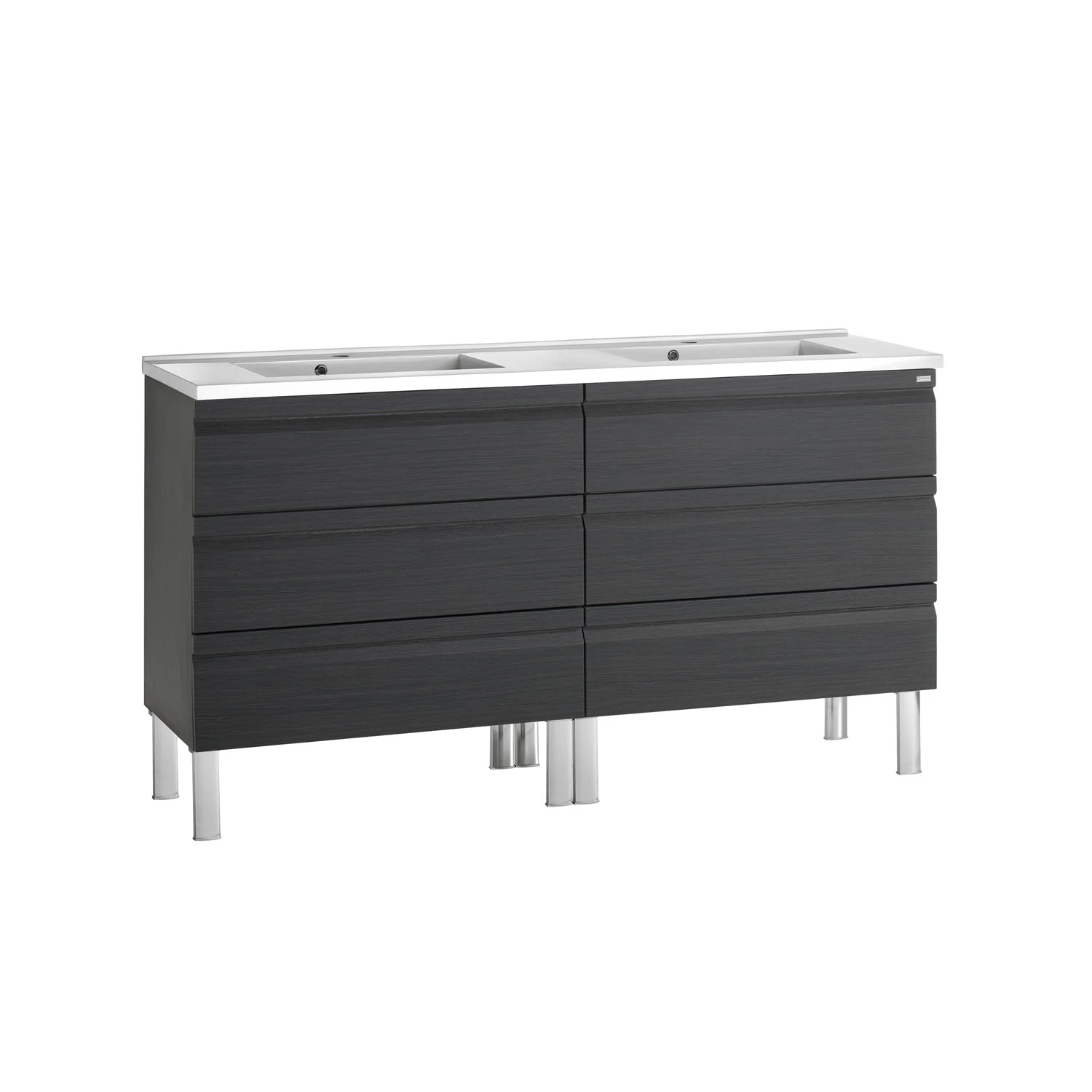 - Vanity Cabinet with 6 Drawers and Kubic Solid Surface Sink with mounting Hardware.