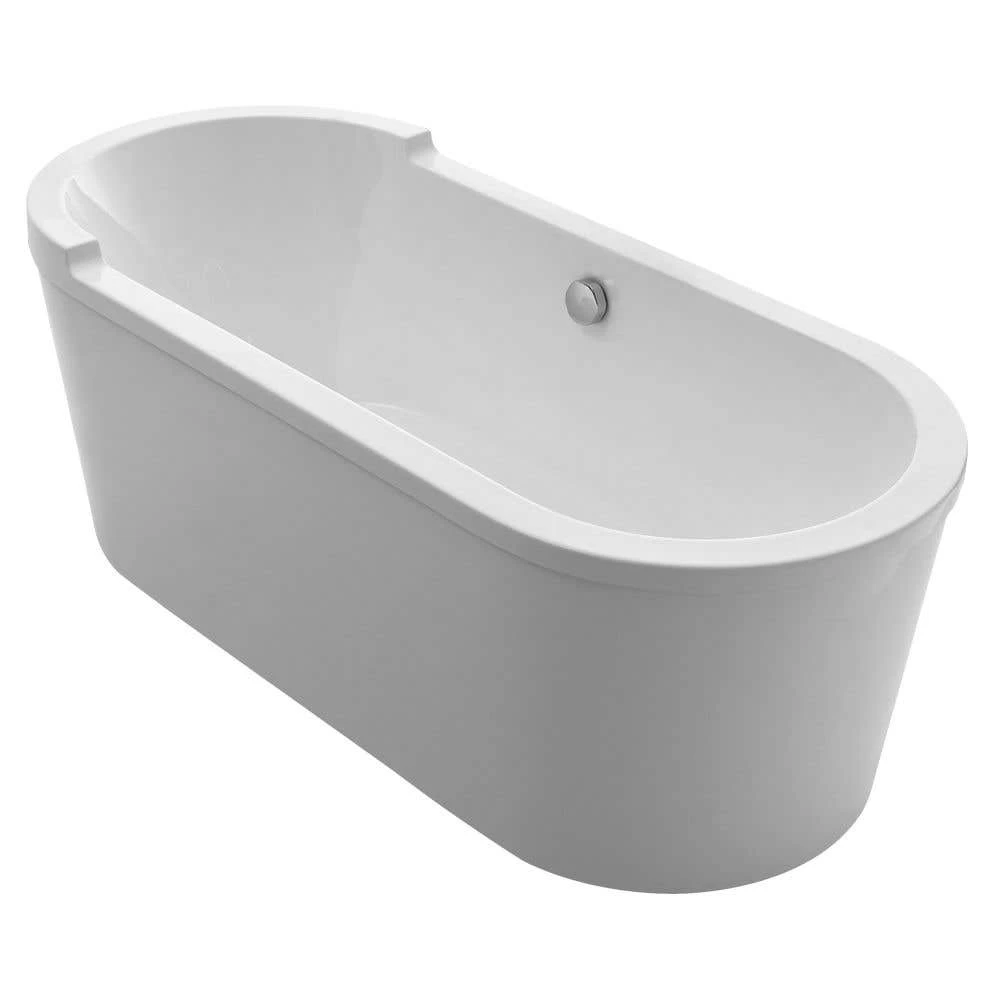 - Oval double ended single sided armrest freestanding bathtub with a white finish