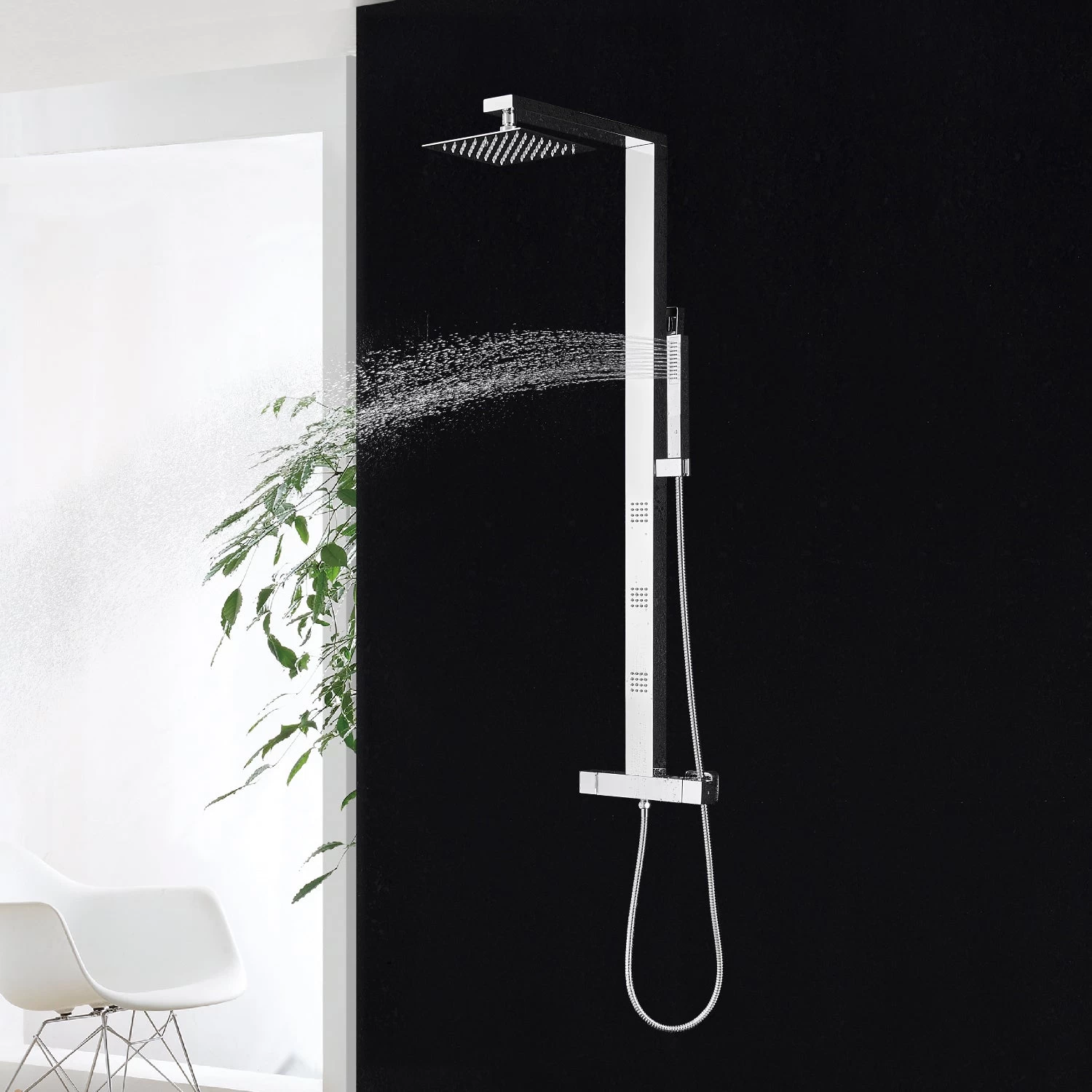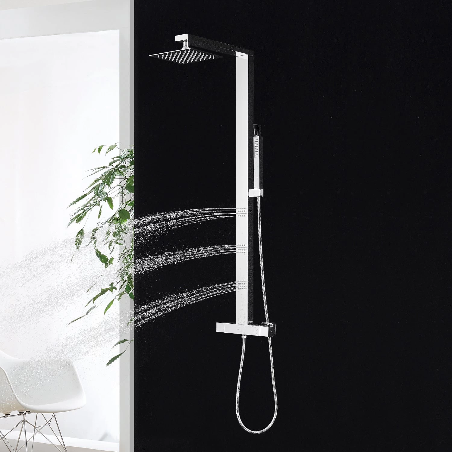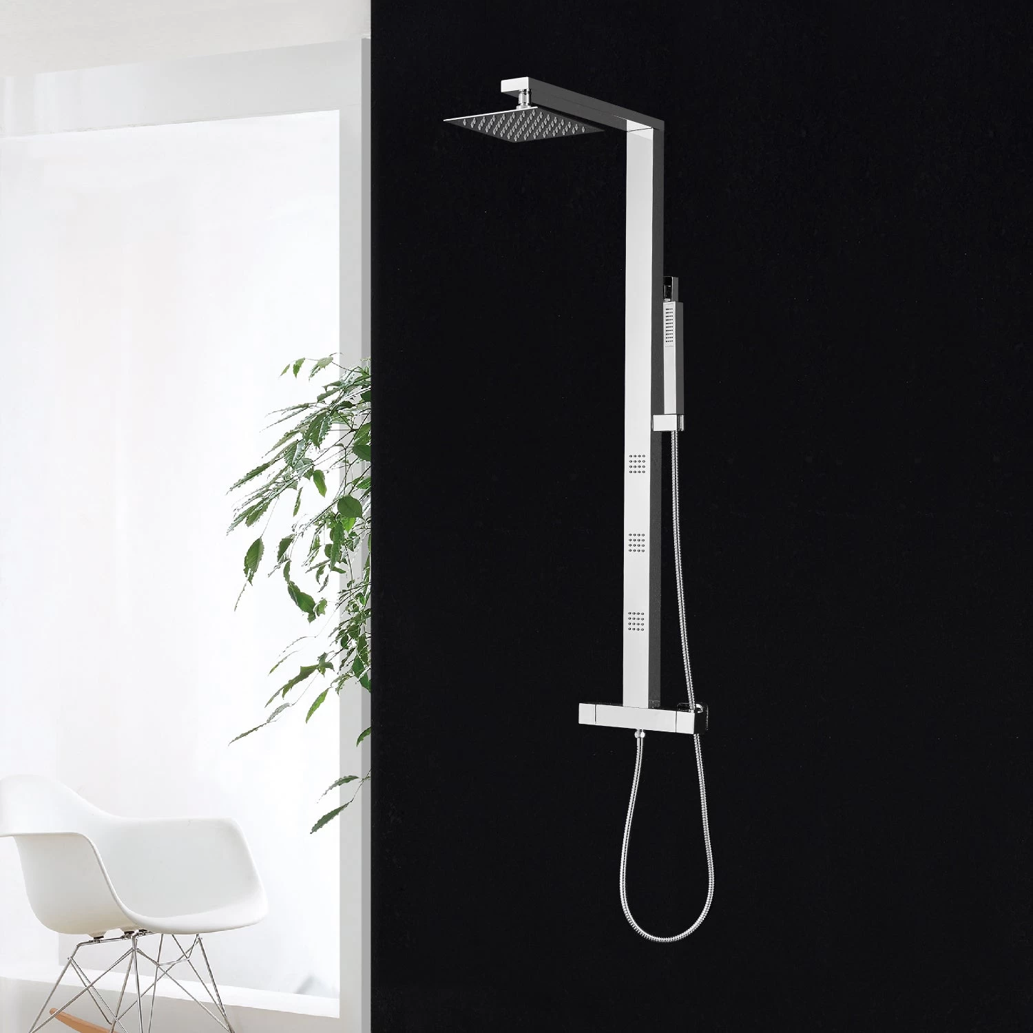 DAX Stainless Steel Shower Column Thermostatic Mixer Body Jets Hand Shower (DAX-019-CR)