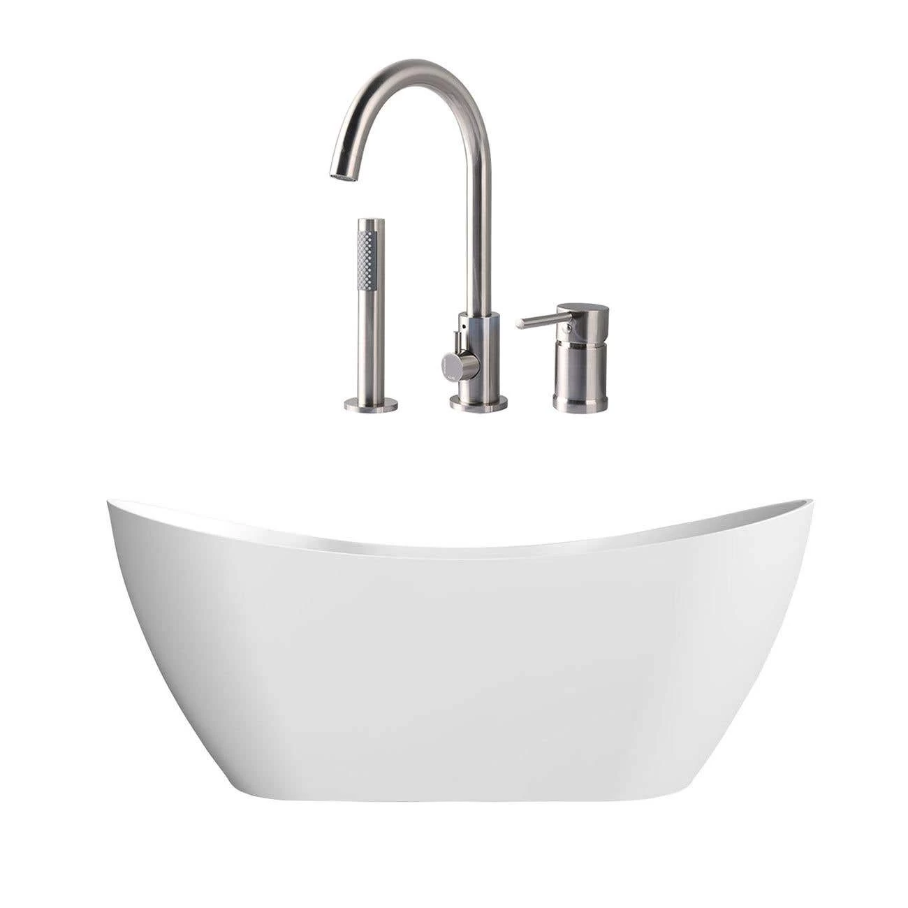 - Package includes: Maxwell Acrylic Double Slipper Freestanding Tub and a Contemporary Deck Mount Tub Faucet with Handshower