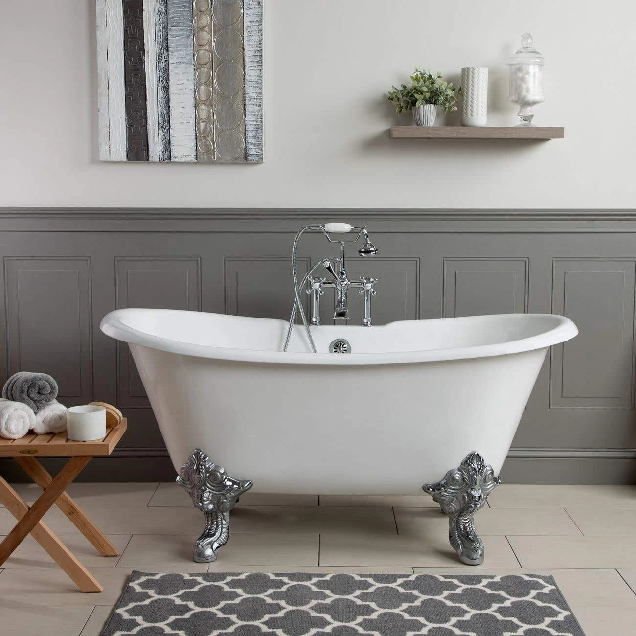 The Monarch Double Slipper Clawfoot Tub is a striking option that enhances any bathroom style. This beautiful clawfoot bathtub features a rounded bathtub rim and is finished with premium porcelain over cast iron, providing excellent durability and resilience. With breathtaking cast iron monarch feet, the intricate details of this clawfoot cast iron tub will add remarkable beauty to your bathroom space.
