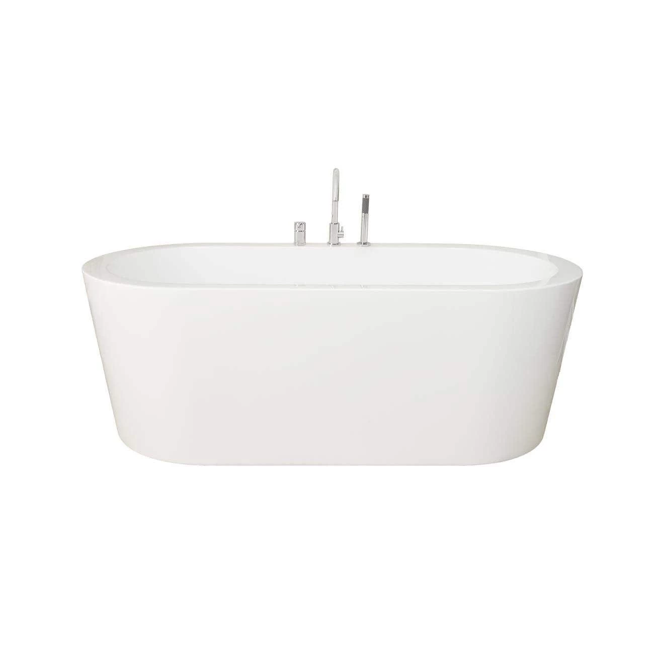 - Package includes: Wyatt 67 Inch Acrylic Double Ended Freestanding Tub and Contemporary Deck Mount Tub Faucet with Handshower
