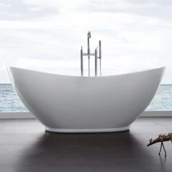 Transform your master bathroom into a luxurious getaway with the Parker Freestanding Tub. This double-ended bathtub boasts an upscale, modern design that will surely turn heads. Featuring a high-gloss, stain-resistant surface, this acrylic tub is easy to clean.