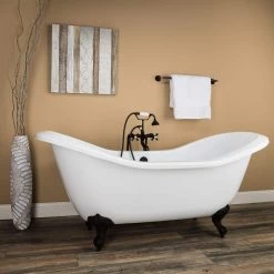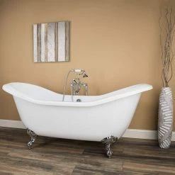 Serenity 72 Inch Acrylic Double Slipper Tub And Shower Package – White / Chrome Feet & Fixtures