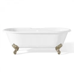 Giorgio 67 Inch Solid Surface Freestanding Double Ended Bathtub – No Faucet Drillings – Gloss White